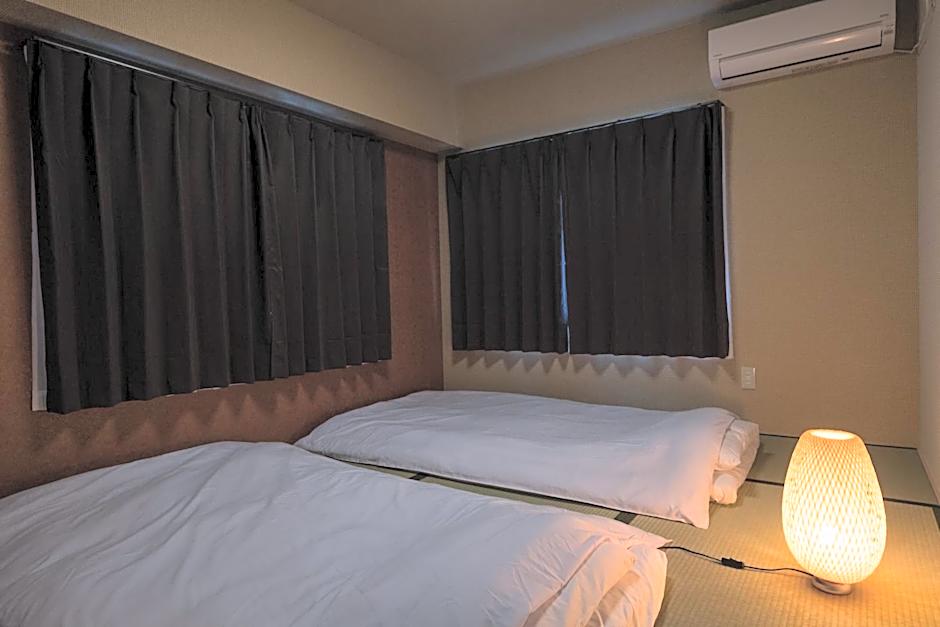 The quadruple room features air conditioning, tatami, as well as a shared bathroom boasting a hairdryer and slippers. The quadruple room provides soundproof walls, a wardrobe and a quiet street view. The unit has 4 futons.